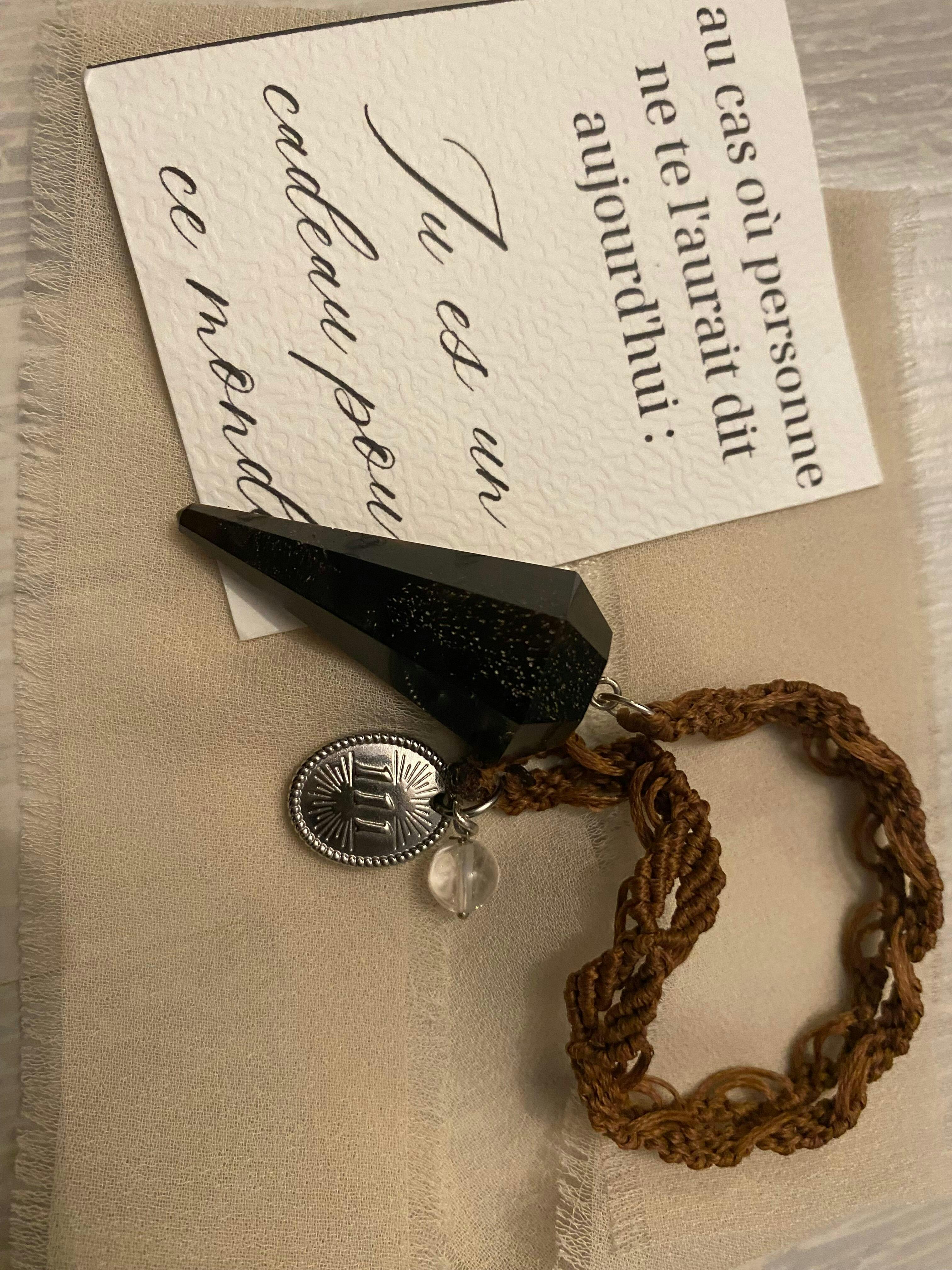 En recevant mon colis, j’ai été touchée par le soin apporté à chaque détail. Manon met tout son cœur dans ce qu'elle fait. Ce pendule est une pièce unique, originale et pleine de charme. C'est un objet que je conserve bien précieusement. Merci beaucoup Manon !