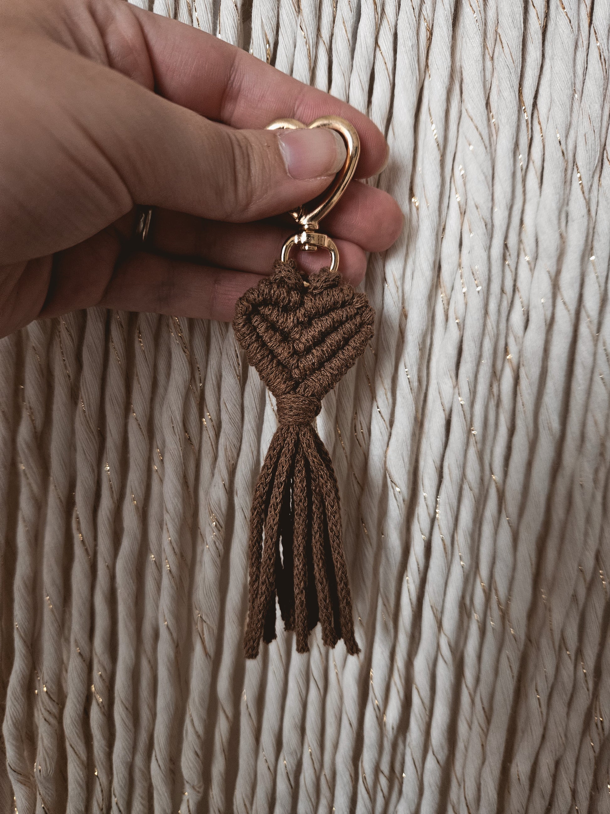 Ce cœur en macramé, fait main, apportera une touche bohème et chaleureuse à votre trousseau ou votre sac. 🤎